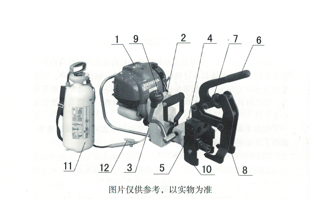 4. 加注汽油時,發(fā)動機需要停機,并遠離火源,加油后要擦凈機具表面殘留汽油。推薦使用辛烷值在90#或更高的無鉛汽油。